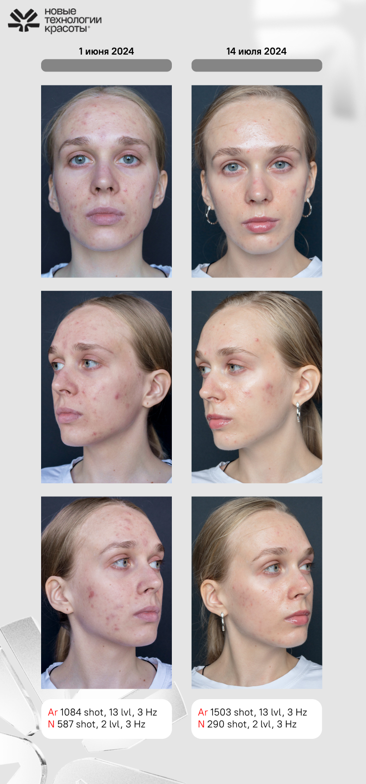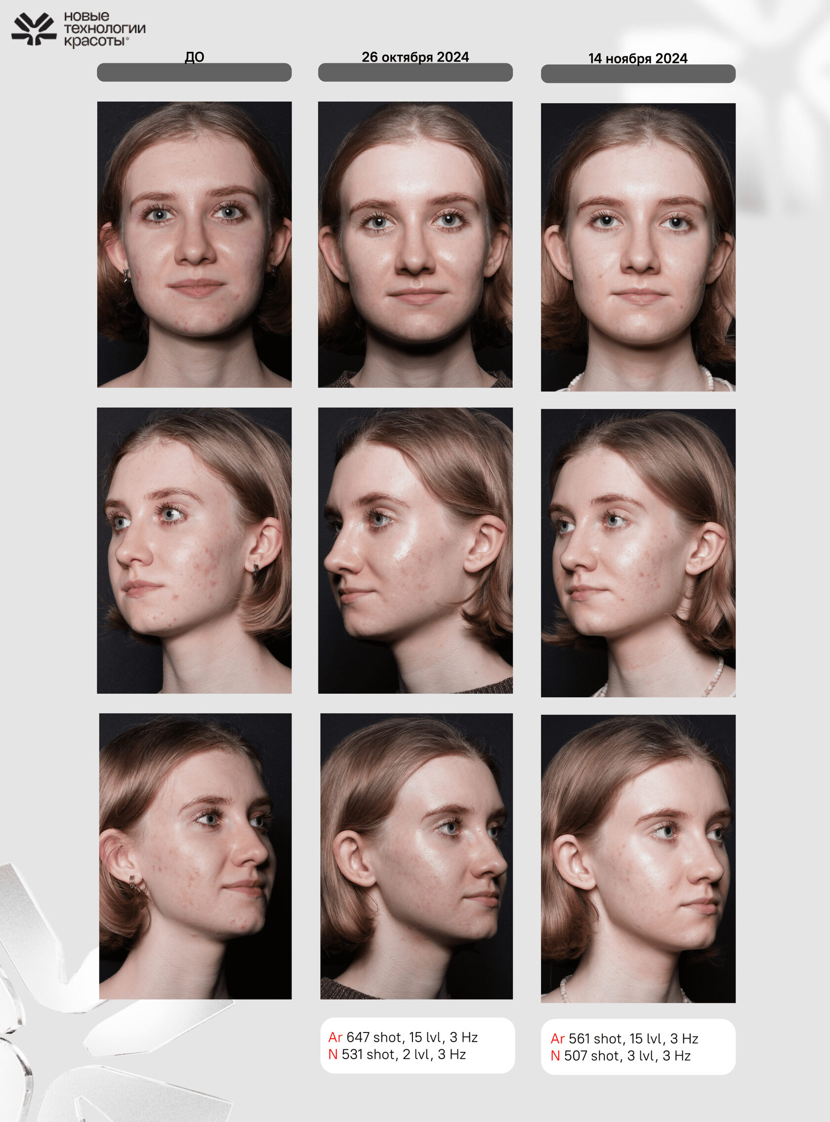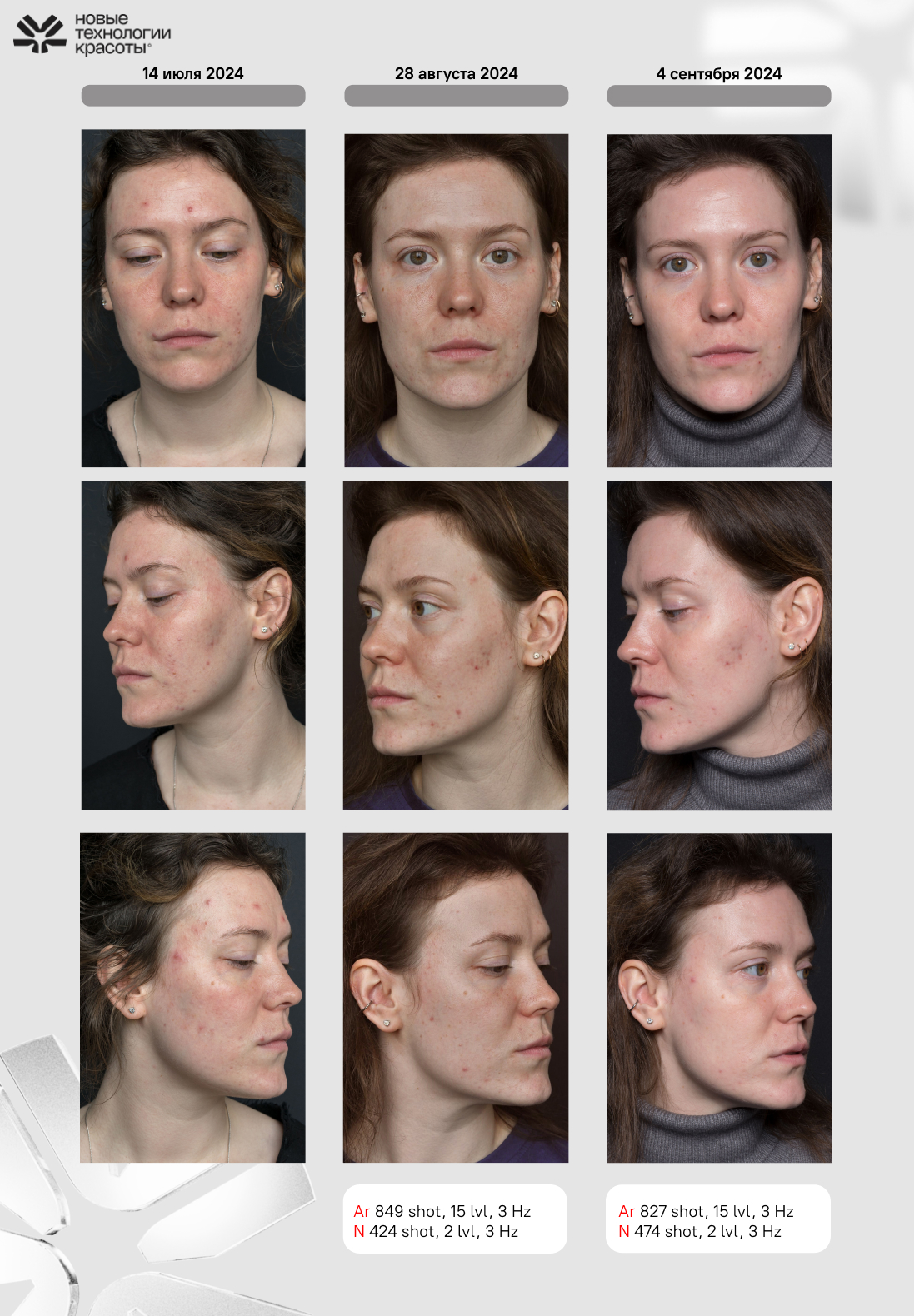 Перед началом курса процедур некоторым пациентам, согласно назначению врача, проводилась предварительная чистка кожи лица. Изначально предполагалось применение универсальных параметров комбинированного воздействия азотом и аргоном для всех пациентов: