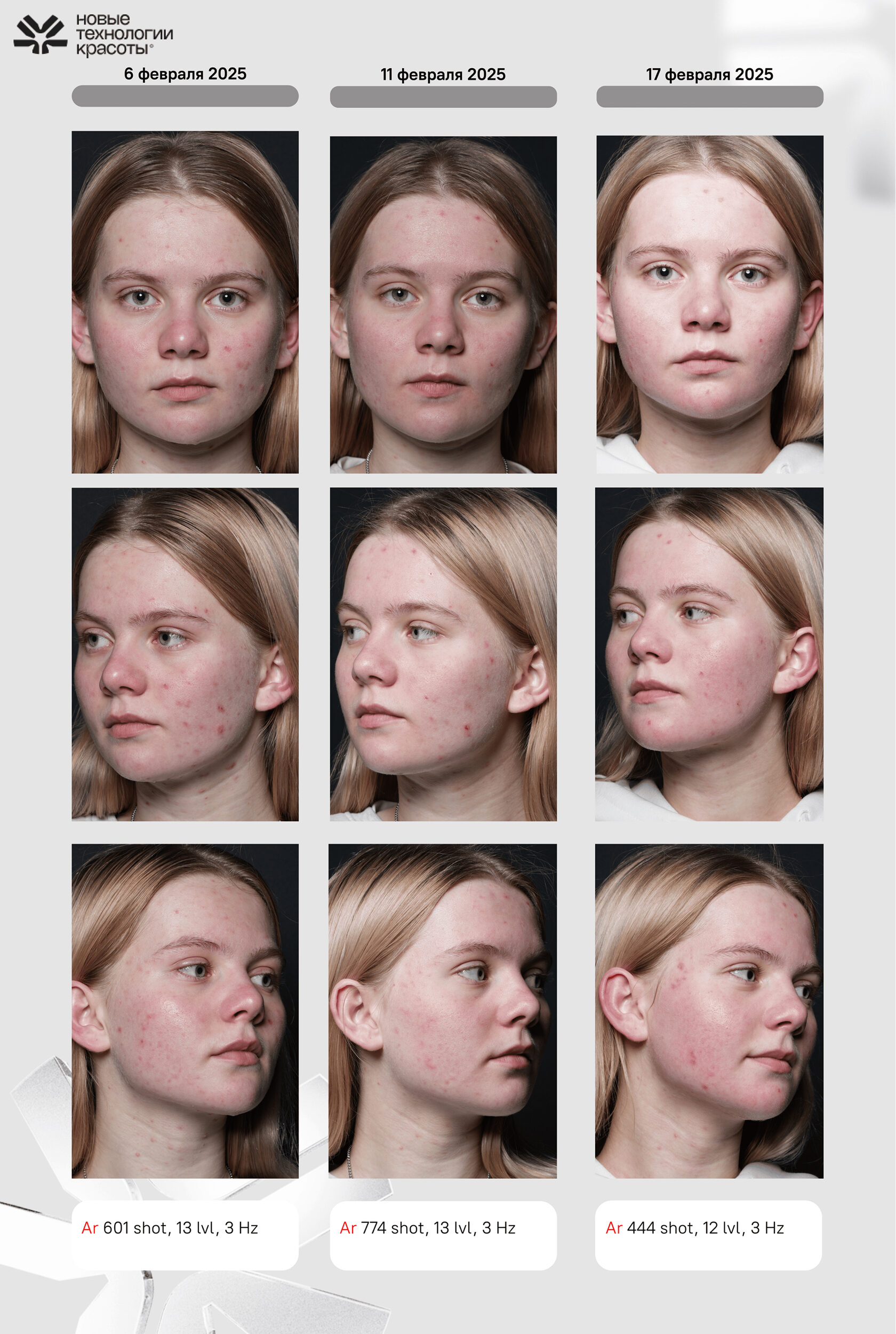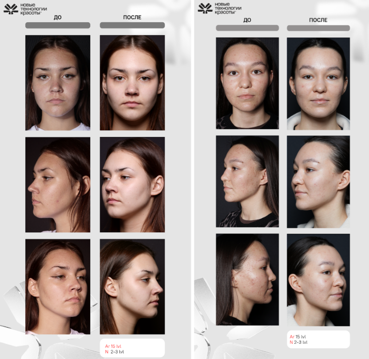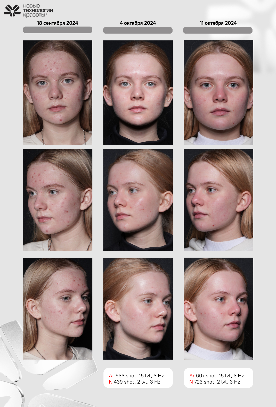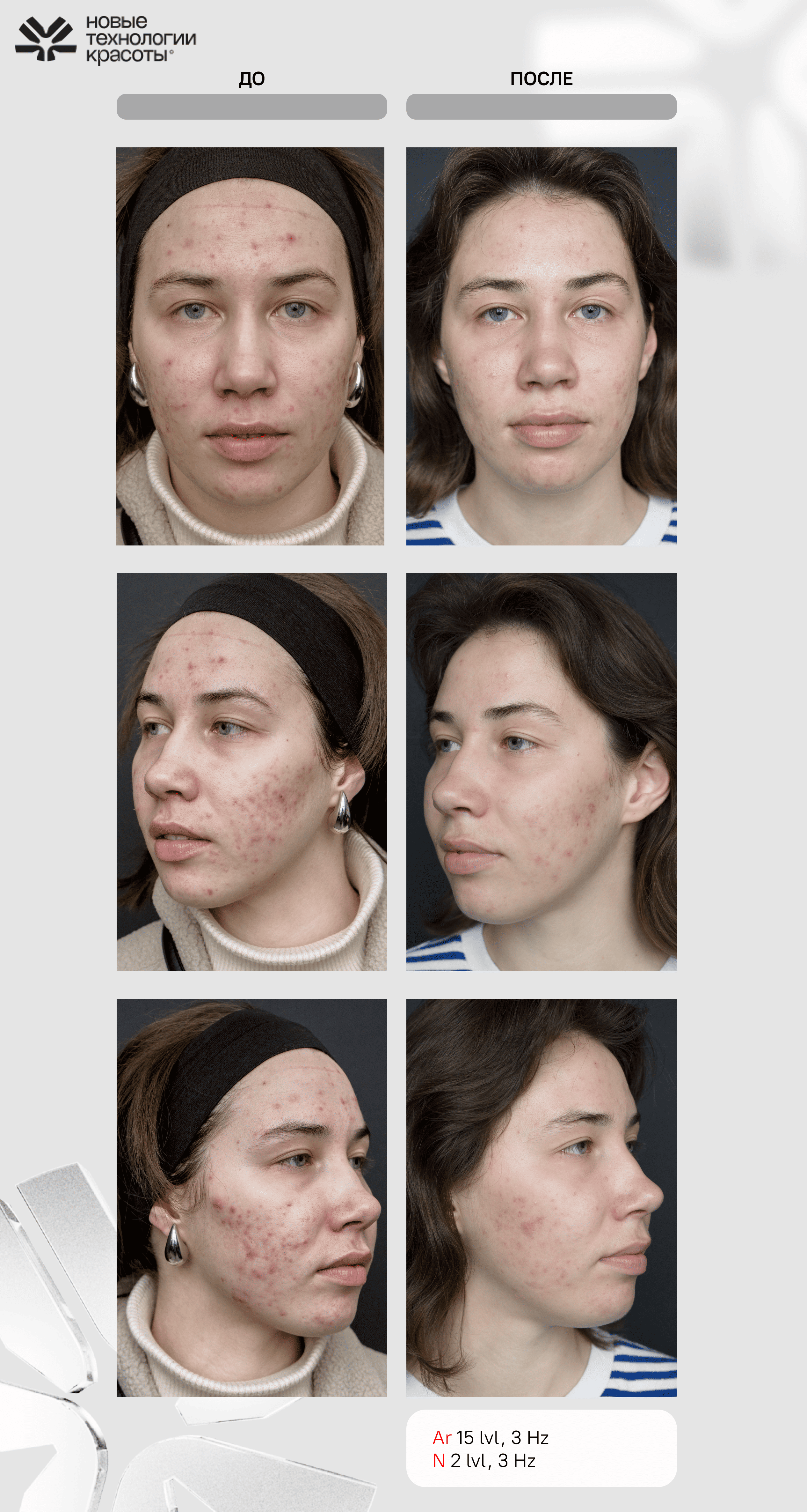 Перед началом курса процедур некоторым пациентам, согласно назначению врача, проводилась предварительная чистка кожи лица. Изначально предполагалось применение универсальных параметров комбинированного воздействия азотом и аргоном для всех пациентов: