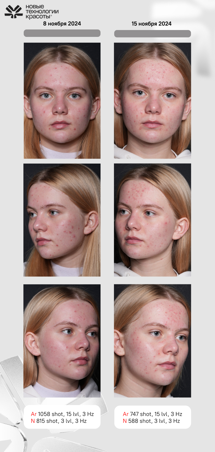 Однако в ходе исследования была выявлена зависимость эффективности от фототипа кожи, что потребовало адаптации параметров и интервалов между процедурами индивидуально для каждого пациента.